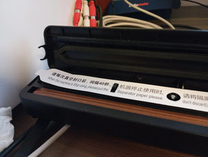 Es muy fácil de usar. Simplemente coloca el alimento en la bolsa, inserta en la máquina y presiona el botón para sellar.